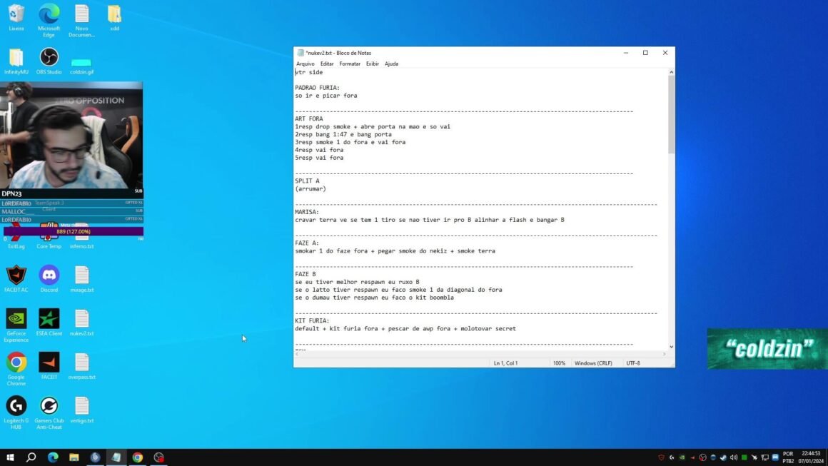 Coldzera, enquanto resolvia alguma questão no próprio computador, não percebeu que o bloco de notas com as estratégias da Nuke estava aberto. Logo que se dá conta do ocorrido, ele abre o client da FACEIT, tampando assim as táticas.