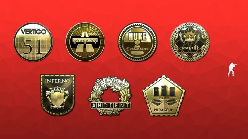 Com isso, não demorou muito para um jogador encontrar dentro dos arquivos de Counter-Strike: Global Offensive imagens que indicam como ficarão os novos stickers (foto de capa). Seguindo o padrão dos adesivos souvenir, os dos mapas também serão dourados, trazendo os brasões que representam cada um dos locais.