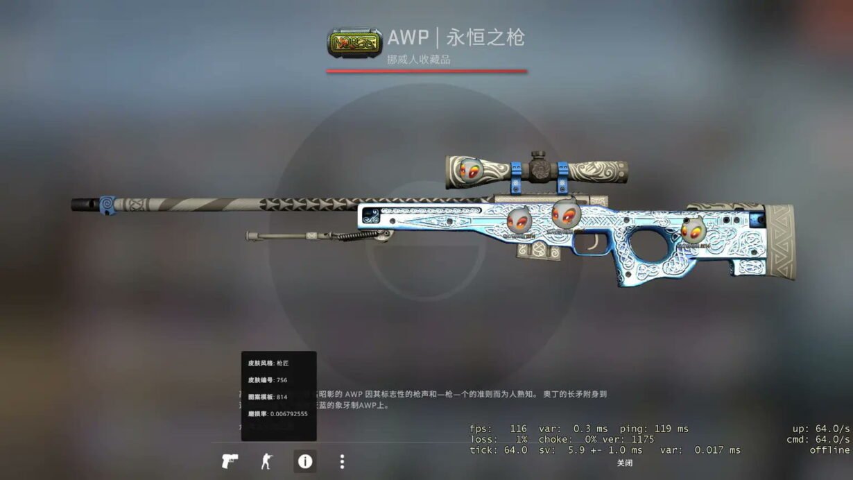 Como se não fosse o suficiente, há um detalhe que também chama a atenção no armamento que não seja os adesivos. O float da arma aparece com 0,006. Isso faz com que ela seja uma das mais novas que se tem conhecimento, fazendo o valor da AWP Gungnir aumentar ainda mais.