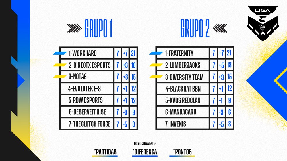 Foram 14 times na disputa de seis vagas para as finais do campeonato, e a briga foi bem acirrada. Houveram vários jogos apertados, com WorkHard confirmando seu favoritismo no grupo A e a Fraternity, de Matheus “uet4” Ueta e companhia, assegurando a vaga direta para a semifinal no grupo B.