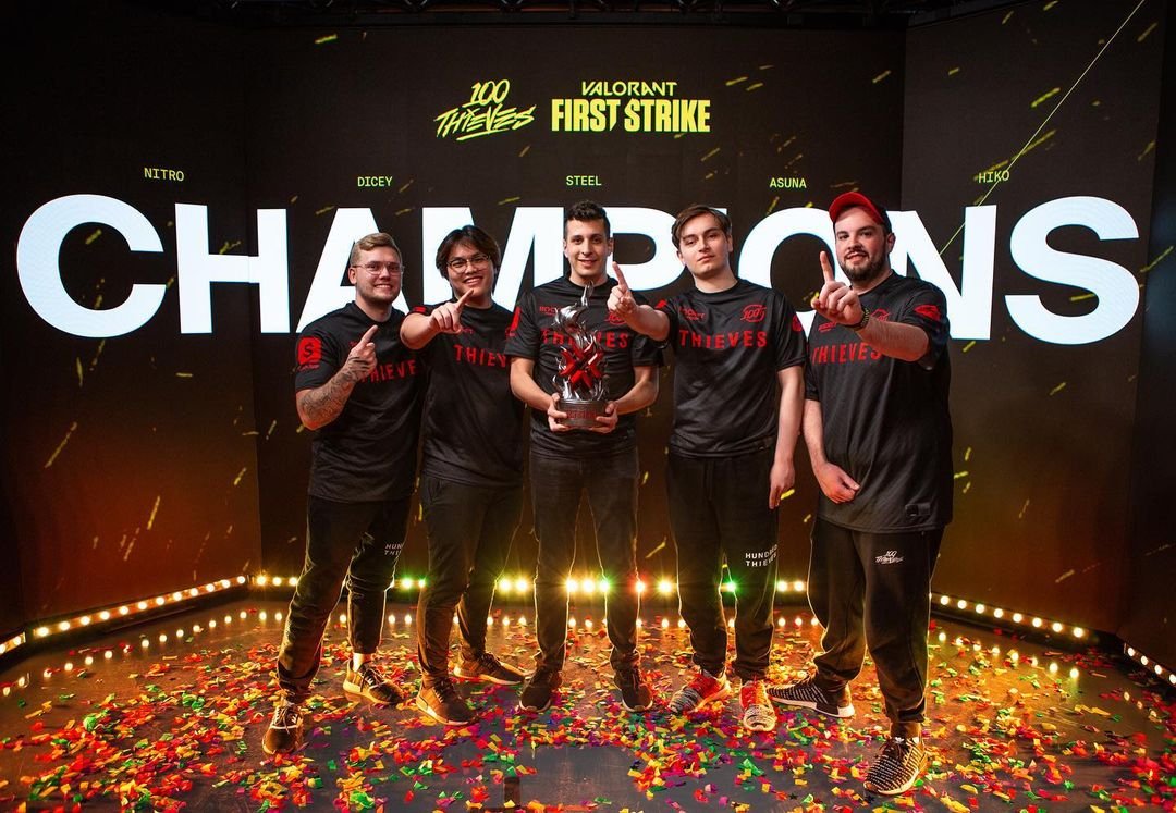 Elenco da 100 Thieves foi campeão do First Strike da América do Norte (Foto: Reprodução/100 Thieves)