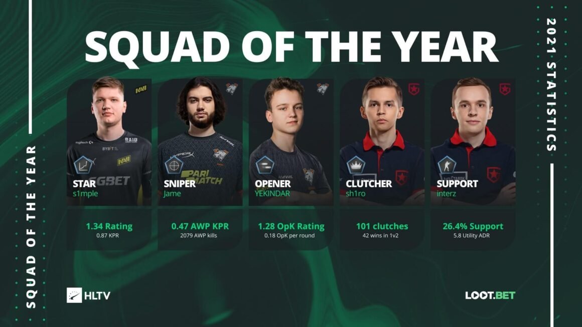 Tradição em muitos esportes coletivos, a eleição do time do ano também aconteceu no Counter-Strike: Global Offensive através do site HLTV, um dos mais renomados do mundo. O portal definiu os cinco melhores jogadores em cada posição e montou o quinteto dos sonhos para o ano de 2021. Confira abaixo: