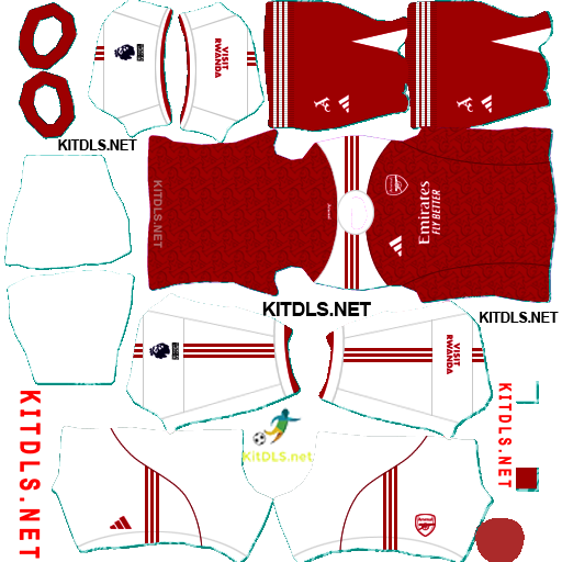Abaixo você confere as imagens e os links diretos para o escudo e os uniformes do Arsenal, prontos para serem usados no Dream League Soccer 2026:
