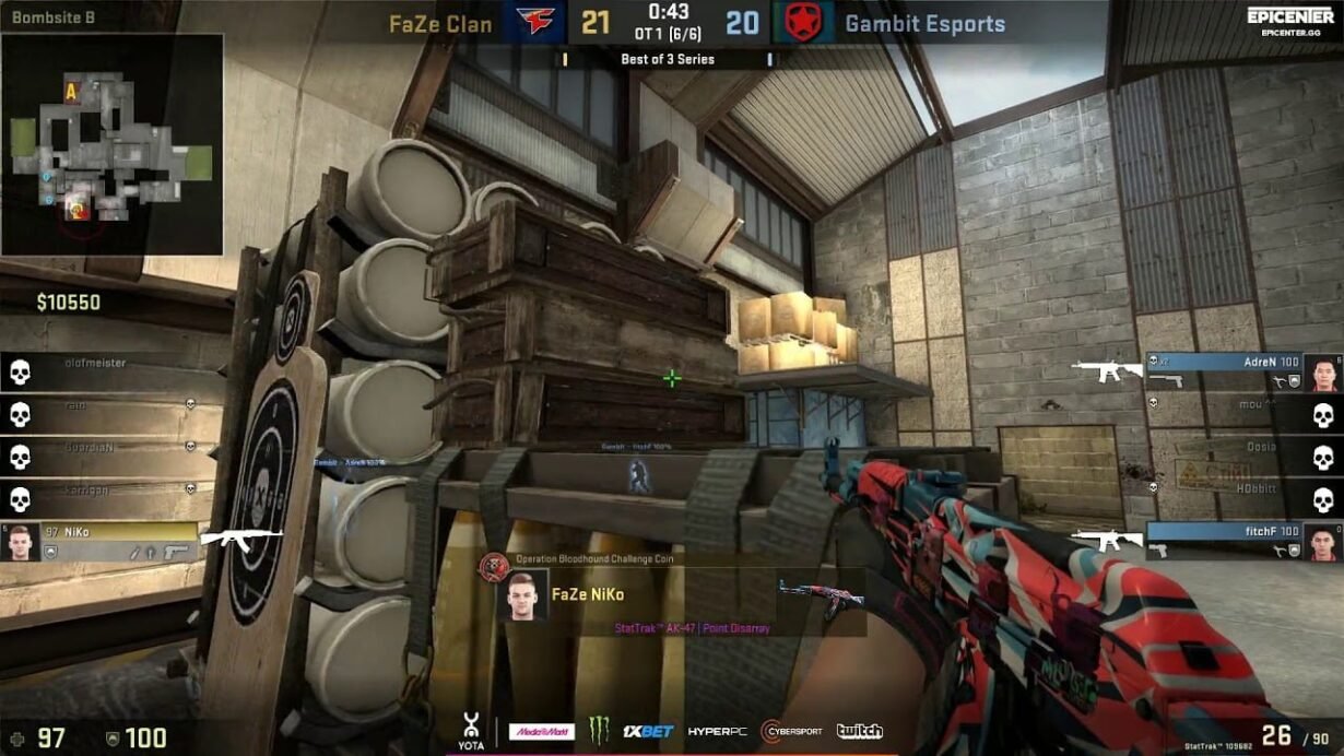 NiKo vence o 2 x 1 no round decisivo da segunda prorrogação e a FaZe Clan bate a Gambit por 2 a 1 pela EPICENTER 2017.