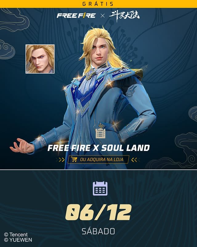 - Evento Free Fire X Soul Land: Conjunto Dai Mubai e Avatar.