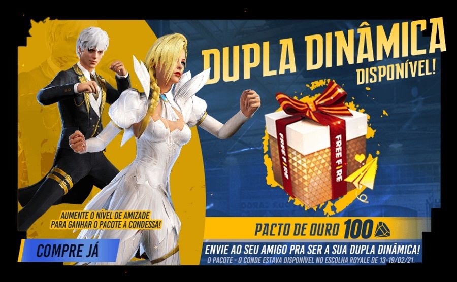 O Free Fire recebeu na atualização desta quarta-feira (14) a função que permite se casar com um amigo dentro do jogo. Chamada de Dupla Dinâmica, ela já havia sido anunciada pela desenvolvedora no início do ano e gerou grande repercussão da comunidade, principalmente nas redes sociais.