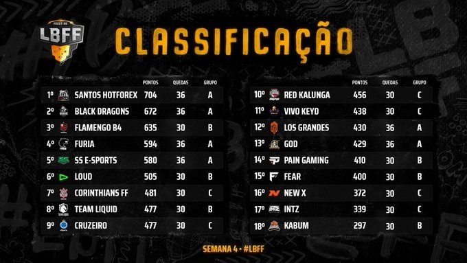 Confira a tabela atualizada após o fim da quarta semana da LBFF: