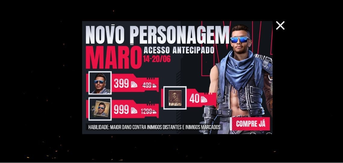 Maro é o mais novo personagem de Free Fire e, de forma antecipada, pode ser adquirido na loja do jogo, com até 20% de desconto. Trata-se do evento Maro Antecipado, que vai até domingo (20).