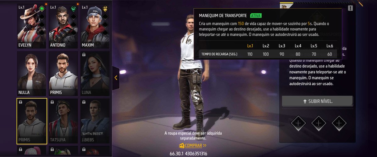 No nível 1, a habilidade tem um tempo de recarga de 110 segundos. Já no último, cai para 60 segundos. Veja abaixo mais detalhes.