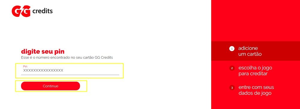 Além dos pontos presenciais para comprar créditos no GGCredits, também é possível fazer a compra de maneira digital. Para isso, é preciso acessar o aplicativo das lojas, algumas já conhecidas entre os jogadores, e pegar o pin digital. Logo após adquirir o pin, basta fazer o processo que é indicado abaixo.