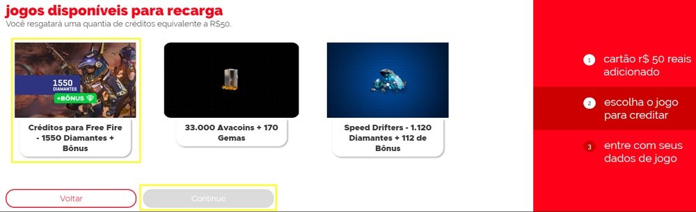 Agora, será possível encontrar três títulos indicados no GGCredits. Por isso, é preciso clicar na opção “Créditos para Free Fire”. Entretanto, caso queira, também é possível adicionar o valor em outros títulos.