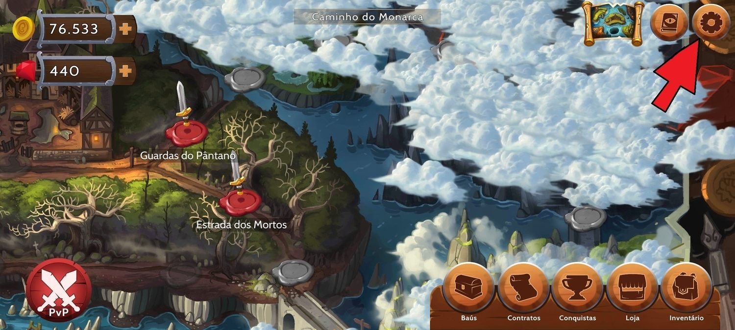 Dentro do jogo, toque no ícone de engrenagem, localizado na parte superior direita da tela..