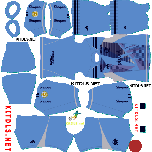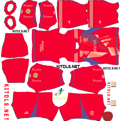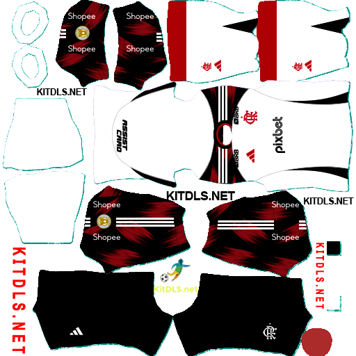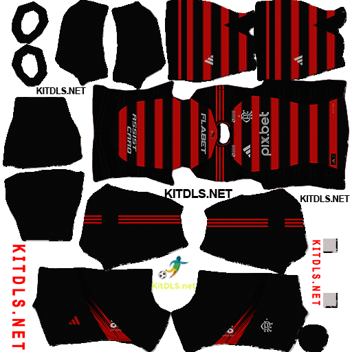 Abaixo você confere as imagens e os links diretos para o escudo e os uniformes do Flamengo, prontos para serem usados no Dream League Soccer 2025: