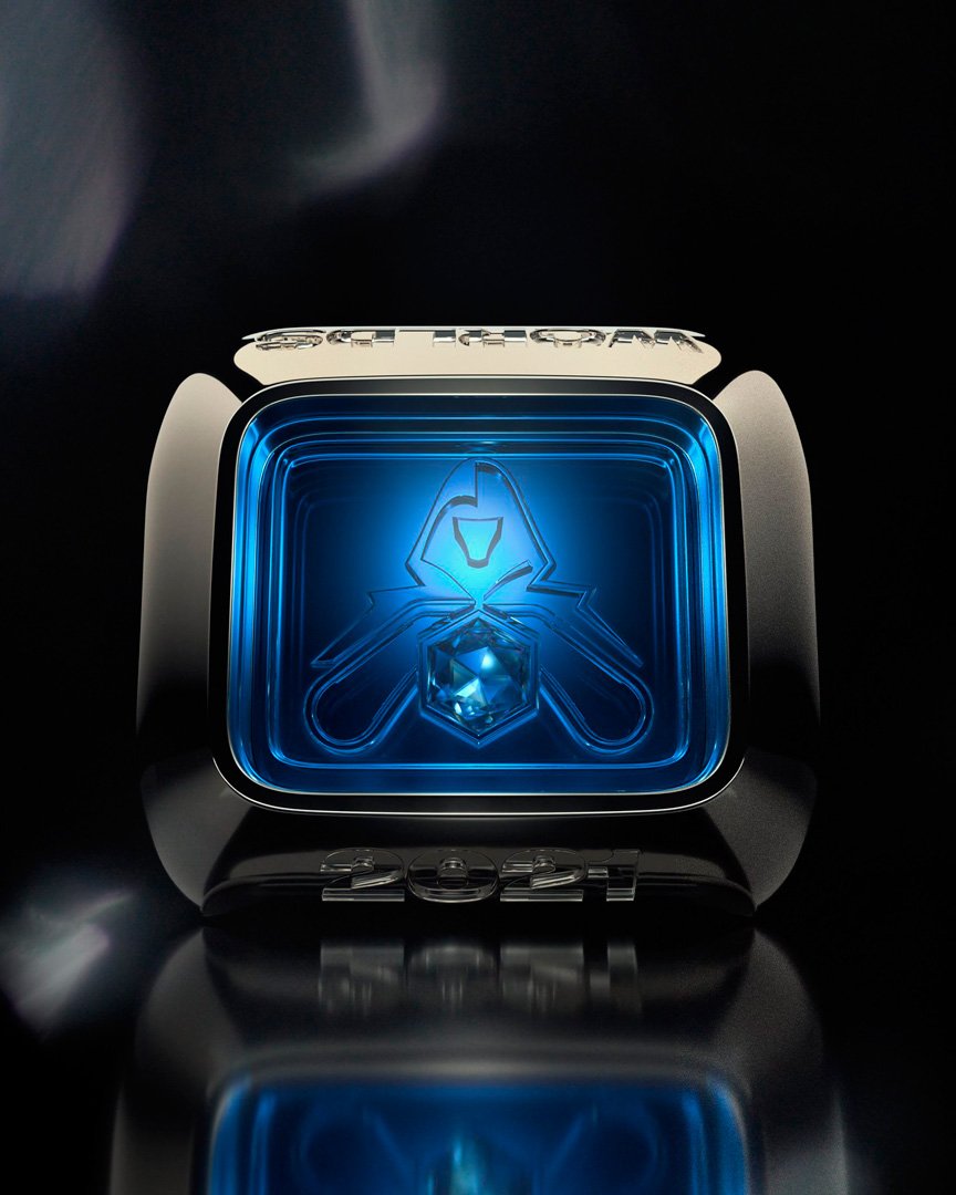 Os anéis trazem todas as características visuais da edição desta temporada, realizada em Reykjavík, capital da Islândia, com detalhes em prata e azul. Além disso, as peças contarão com a escrita “WORLDS 2021” impressa em baixo relevo. Confira como ficou o anel de campeão abaixo.