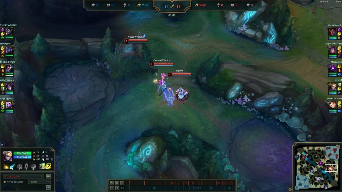 A HUD minimalista é ótima para gravar momentos do jogo como team fights, já que além dos ícones dos Campeões, é possível visualizar o tempo de recarga das Ultimates e os Feitiços de Invocador.