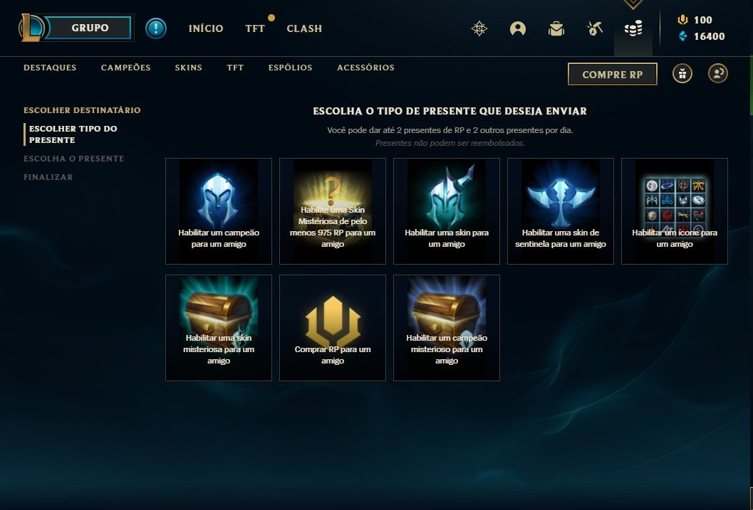 Com a volta do sistema de presentes, os jogadores podem mandar RP (Riot Points) e skins para seus amigos. A última vez que o envio de presentes esteve habilitado foi em novembro de 2022.