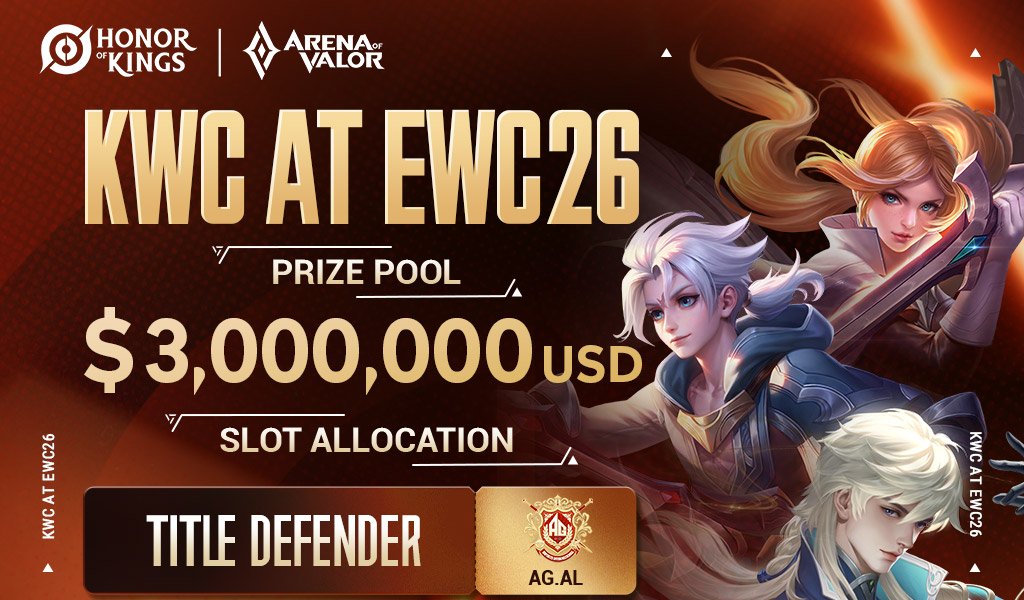 O Honor of Kings World Cup 2026 (KWC at EWC26) foi oficialmente revelado e promete ser o maior torneio da história do game. A competição acontece de 30 de julho a 8 de agosto, em Riad, na Arábia Saudita, como parte da Esports World Cup 2026.