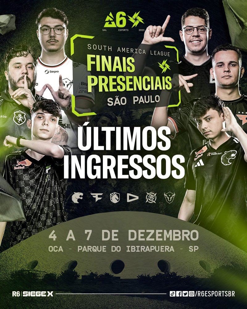 O campeão sul-americano de Rainbow Six Siege será definido presencialmente na Oca, no Parque Ibirapuera, entre 4 e 7 de dezembro. A fase final da South America League (SAL) reunirá seis equipes brasileiras na disputa pelo título regional, por uma vaga direta no Six Invitational 2026 e pela maior parte da premiação total de US$ 100 mil.