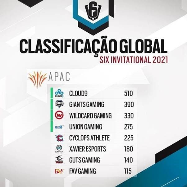 • 17º – CYCLOPS athlete gaming (Ásia-Pacífico) – 225 pontos