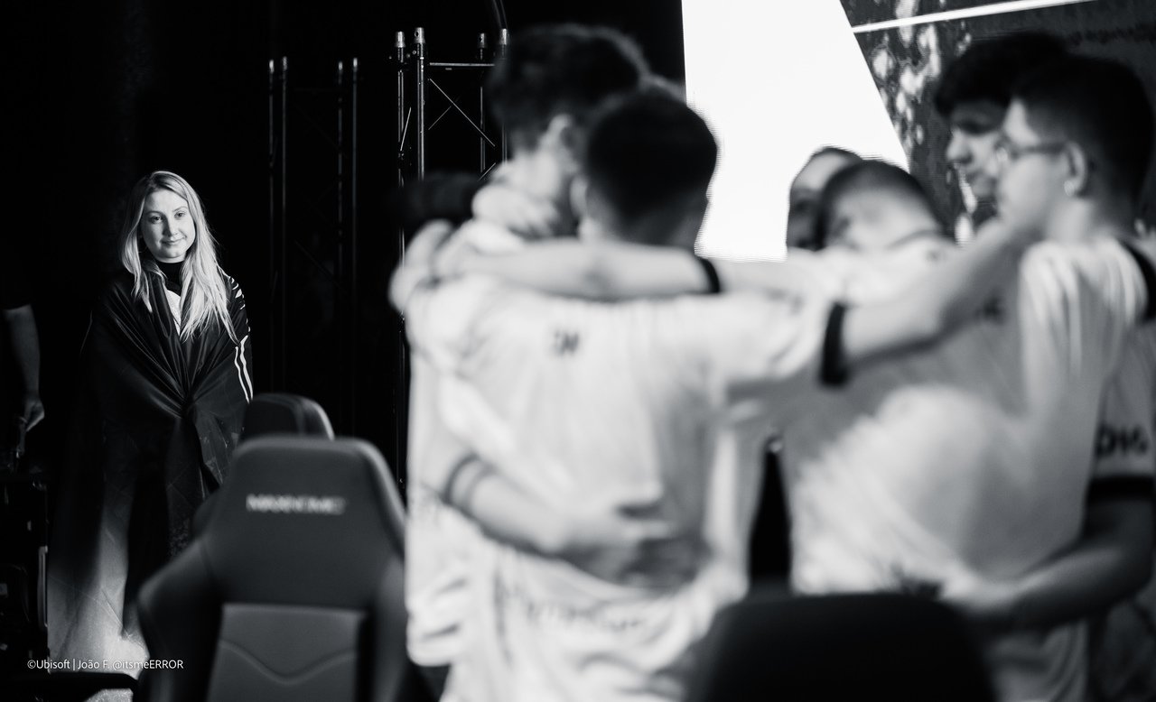 Cherrygumms, CEO da BD, observando a line de R6 da Black Dragons (Foto: Ubisoft/João Ferreira)