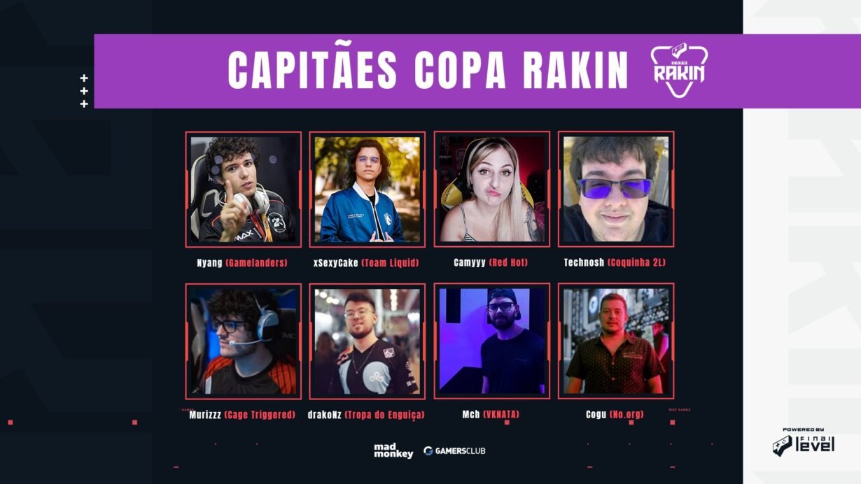 Nesta segunda feira (08), em seu Twitter, Rakin anunciou as equipes que farão parte da primeira Copa Rakin de VALORANT, campeonato em parceria com a Final Level e Gamers Club. Os times serão capitaneados por grandes astros brasileiros.