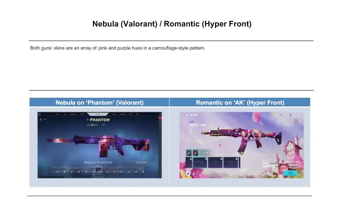No processo, a Riot destaca os diversos aspectos similares entre VALORANT e Hyper Front que podem ser enquadrados como “quebra de direitos autorais”. São mapas, armas, personagens, skins e até mesmo a gameplay.