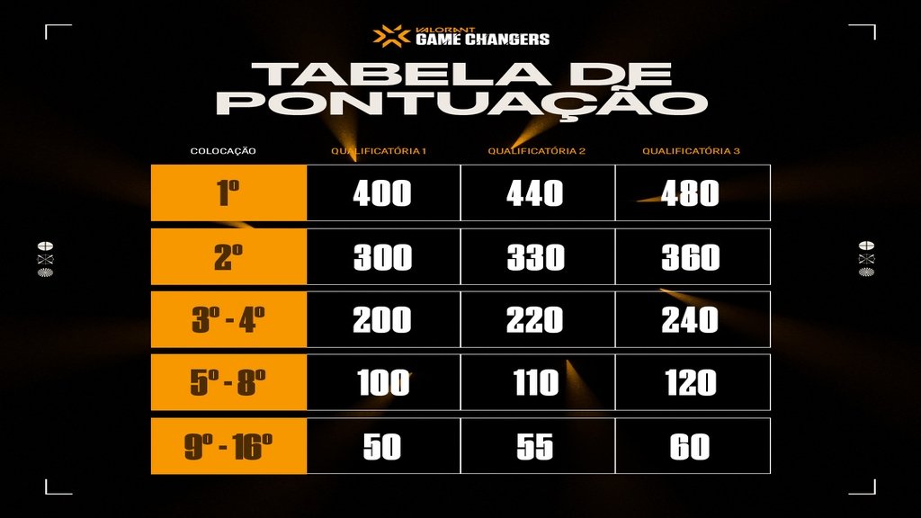 Algo que não mudou é a maneira como será definidas as equipes do evento principal: as 16 melhores equipes a cada qualificatória receberão pontos, acumuláveis para um ranking onde definirá as oito participantes da Etapa 1 do Game Changers Series Brasil, disputada presencialmente no Estúdio da Riot Games Brasil.