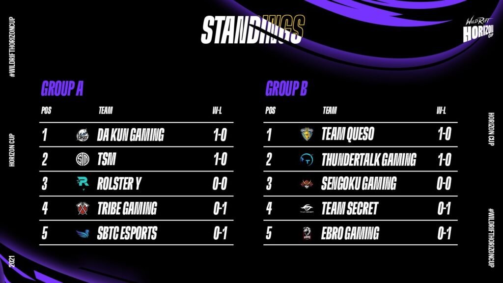 Além da TSM, outros times também fizeram sua estreia na Horizon Cup. O torneio está sendo realizado em Singapura. Confira a tabela de classificação e os demais resultados a seguir.