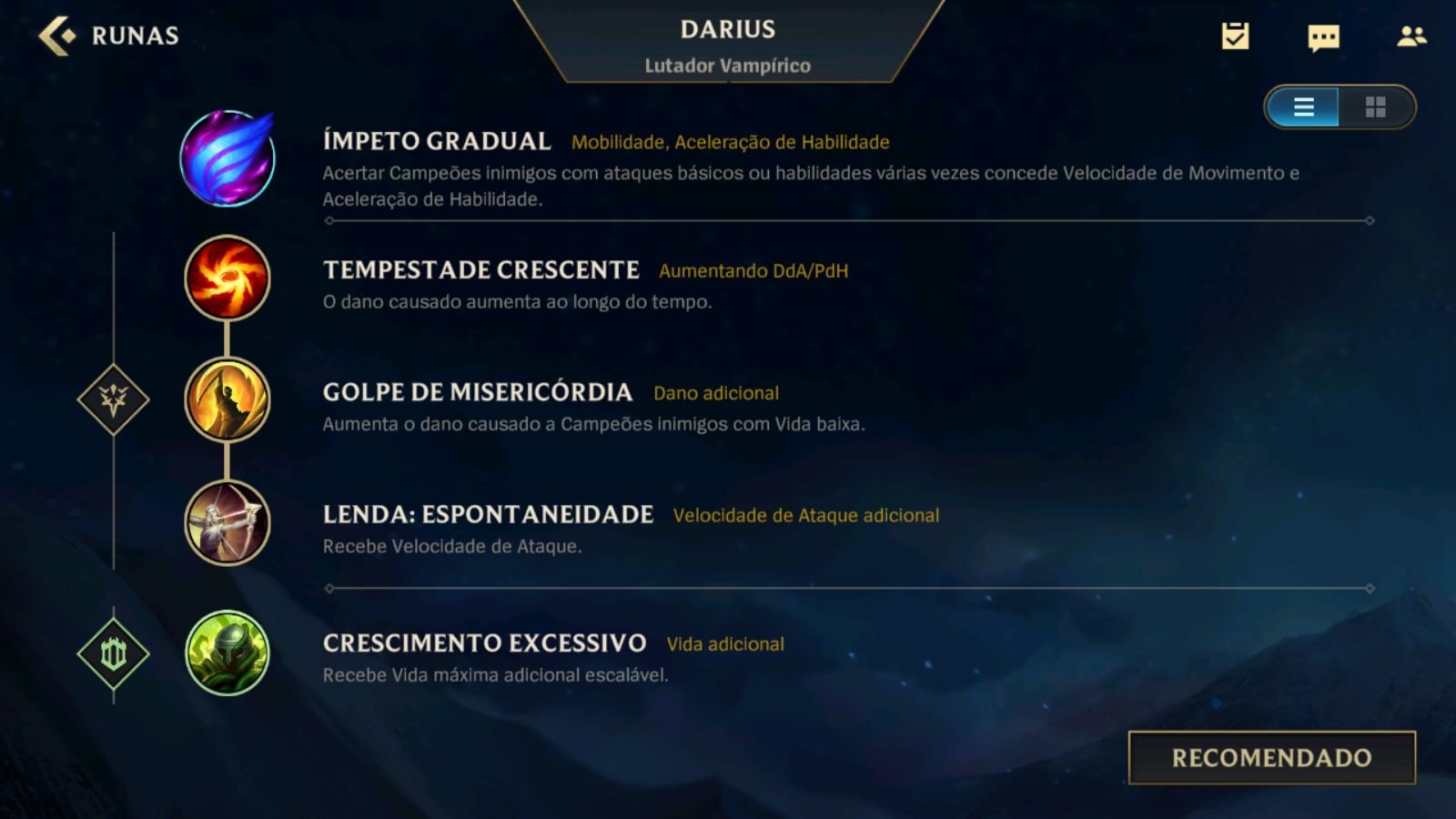 A runa principal de Darius no Wild Rift deve ser Ímpeto Gradual, opção que garante bastante mobilidade para o campeão quando se usa suas habilidades. As runas secundárias são as seguintes: