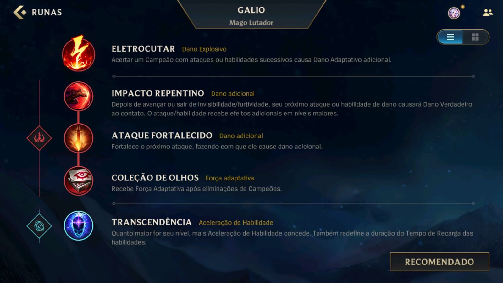 A runa principal de Galio no Wild Rift deve ser Eletrocutar, porque ao usar ataques e habilidades em um curto espaço de tempo será causado dano adicional aos inimigos. As runas secundárias são as seguintes: