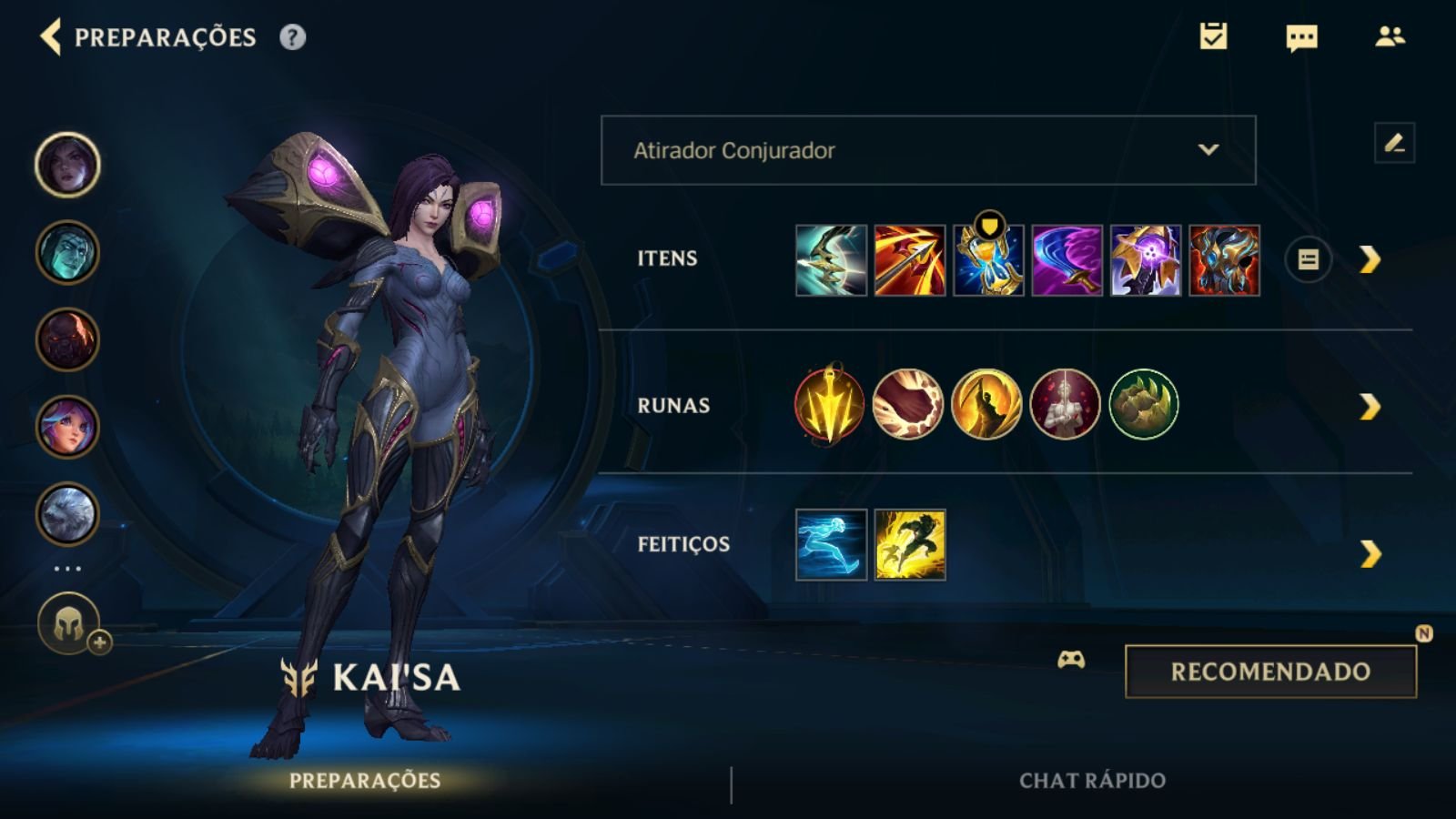Para Kai’Sa, as melhores escolhas para os feitiços de invocador são Flash e Exaustão.