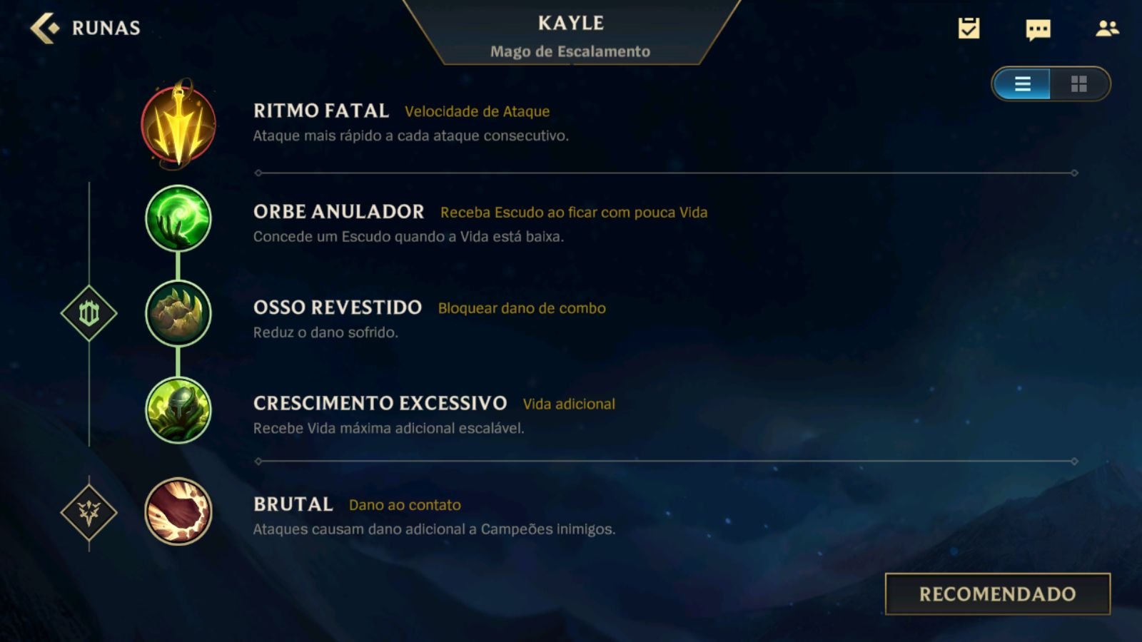 No mid, a runa principal de Kayle no Wild Rift segue sendo o Ritmo Fatal. As runas secundárias são: