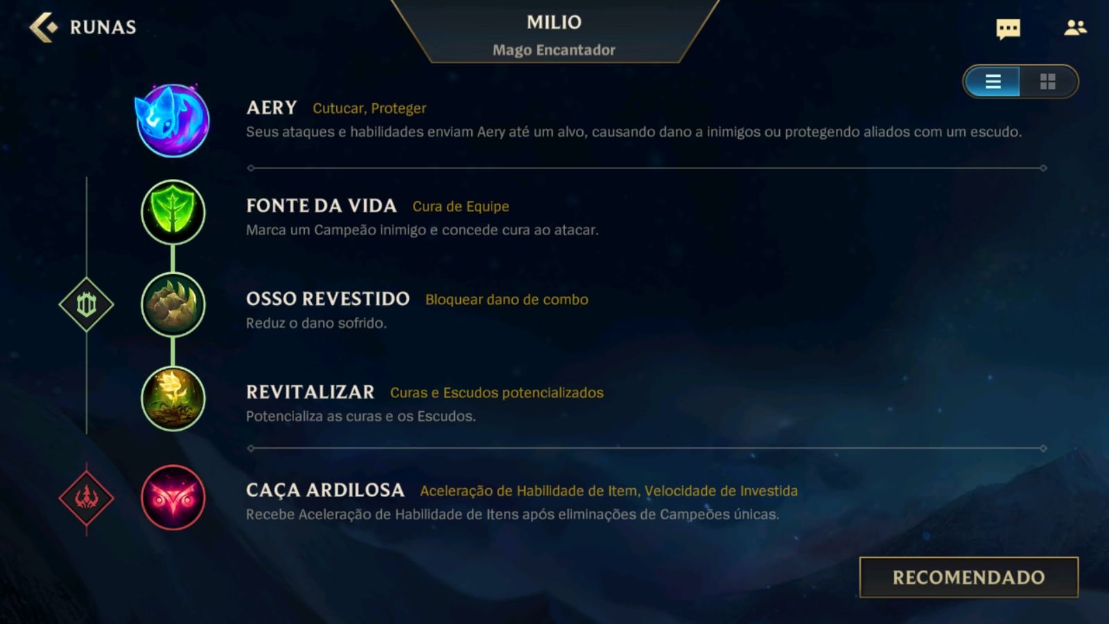 A runa principal de Milio no Wild Rift deve ser Aery, por ser a escolha que auxilia o campeão no seu potencial de poke, principalmente na fase de rotas. As runas secundárias são as seguintes: