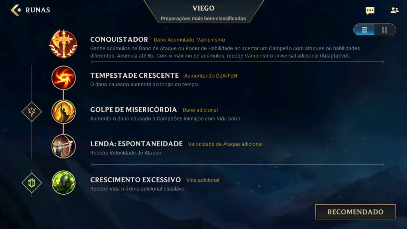 A runa principal de Viego no Wild Rift deve ser Conquistador por conta do dano e sustentação concedido em trocas longas. As runas secundárias são as seguintes: