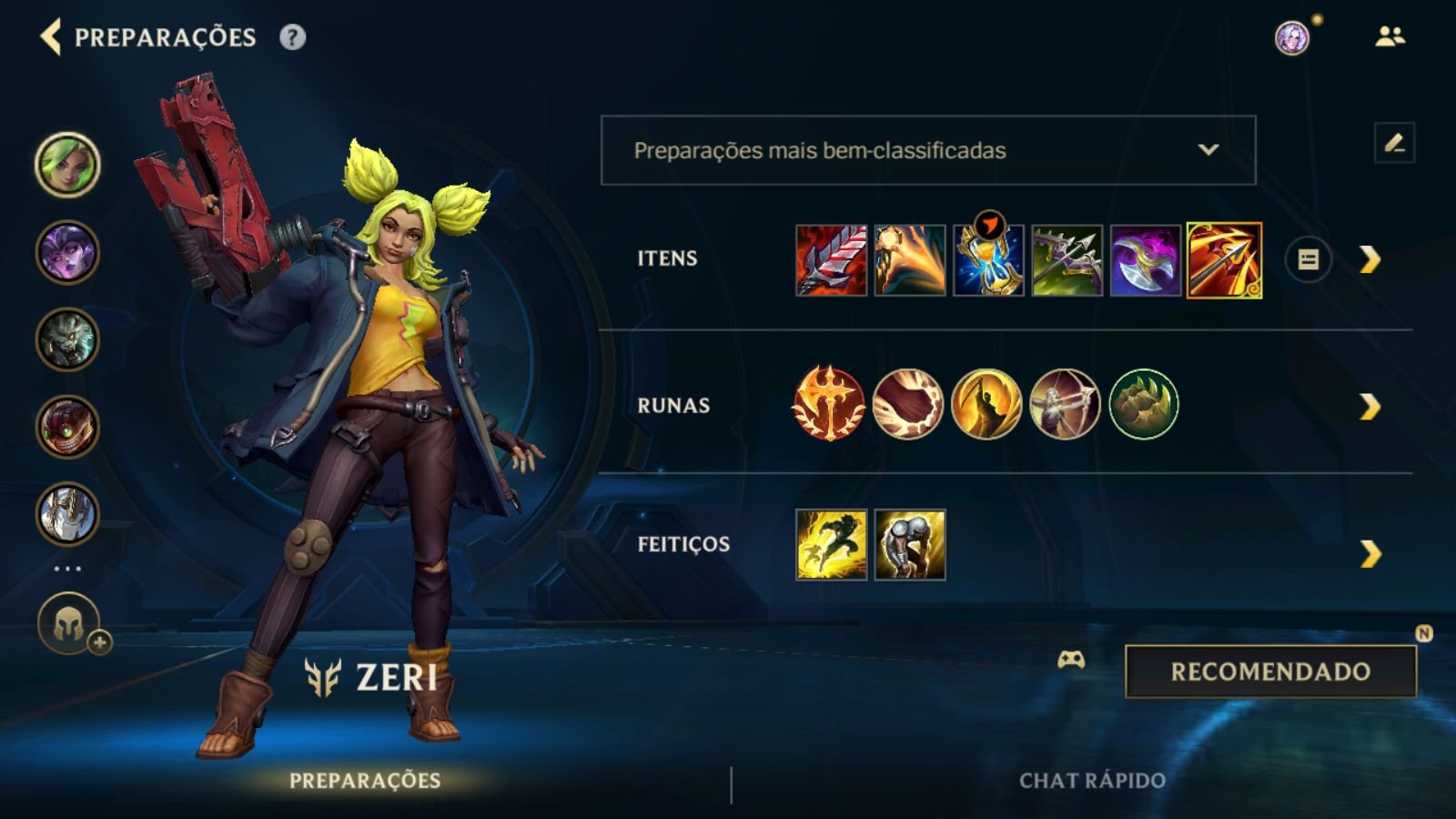 Para Zeri, as melhores escolhas para os feitiços de invocador são Flash e Exaustão.