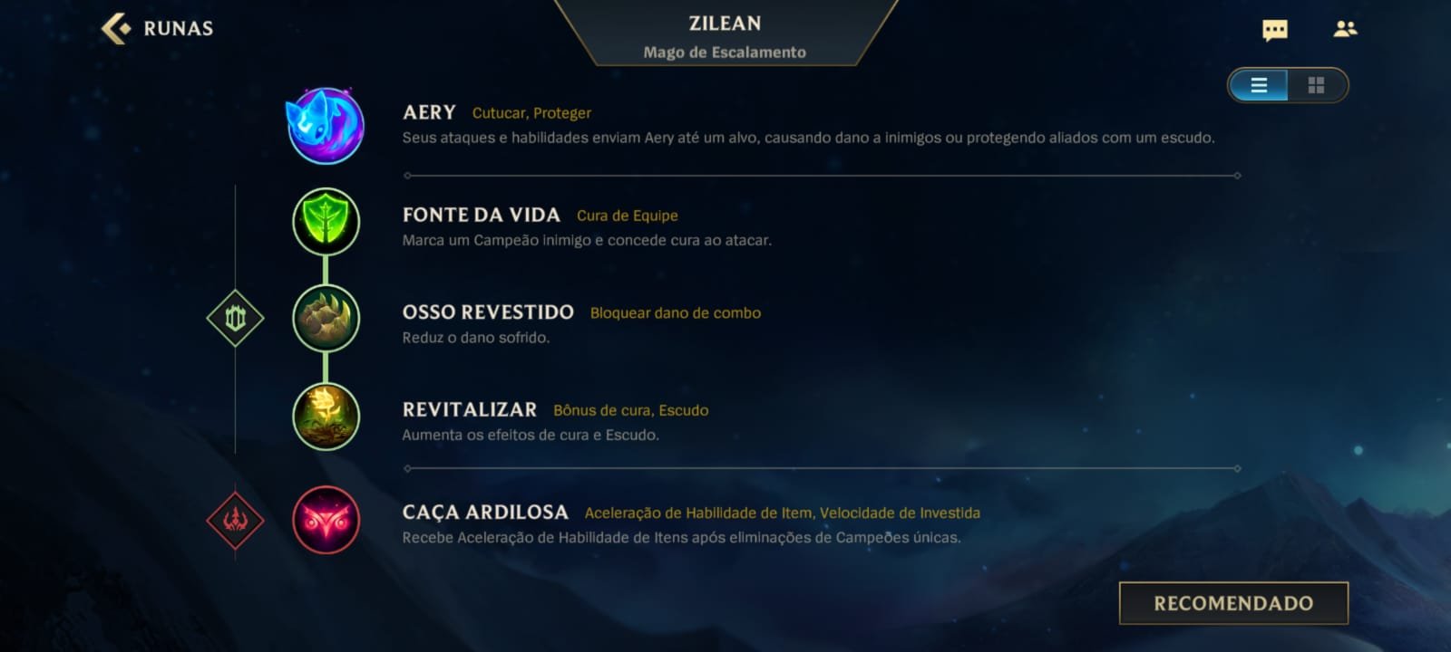 A runa principal de Zilean no Wild Rift deve ser Aery, por ser a escolha que auxilia o campeão no seu potencial de poke, principalmente na fase de rotas. As runas secundárias são as seguintes: